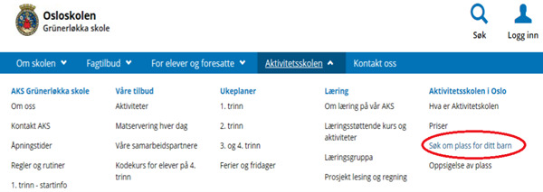 Da må du huske å si opp AKS-plassen om du allerede har søkt om dette. Deretter må du søke om AKS-plass på den skolen hvor barnet har fått innvilget skoleplass.